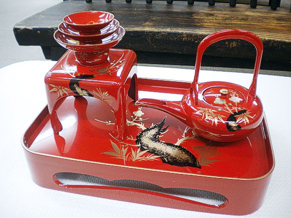 屠蘇器(とそき)は、屠蘇(とそ)を飲むための道具です。屠蘇は、1年間の邪気を払い長寿を願って正月に飲む薬酒のことで、数種の薬草を組み合わせた「屠蘇散(とそさん)」を、日本酒や味醂(みりん)に浸して作ります。