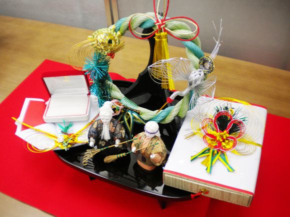 略式ではありますが、当店では、結納本来の縁起の良さを損ねることのないよう、小さくても「鶴・亀・松・竹・梅」など結納の体裁をととのえた商品をご用意しております。