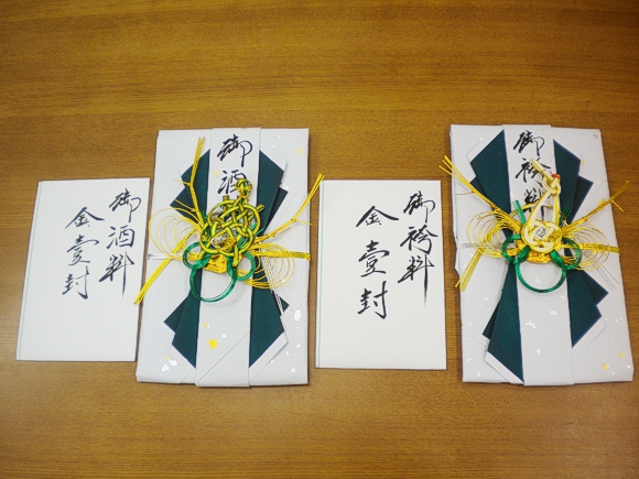 - 御酒料(おさかりょう)・・・中包みを納めます。