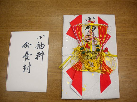 - 小袖料(こそでりょう)・・・結納金の中包みを納めます。