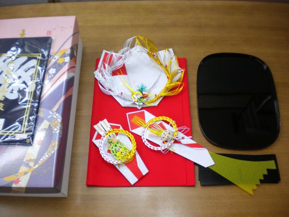 - 結納台は合成漆塗りの黒盆です。