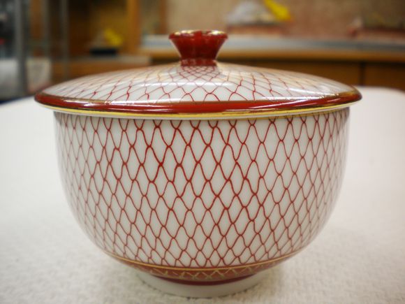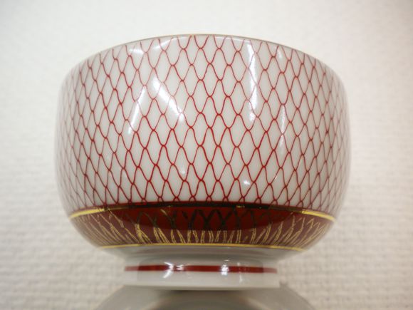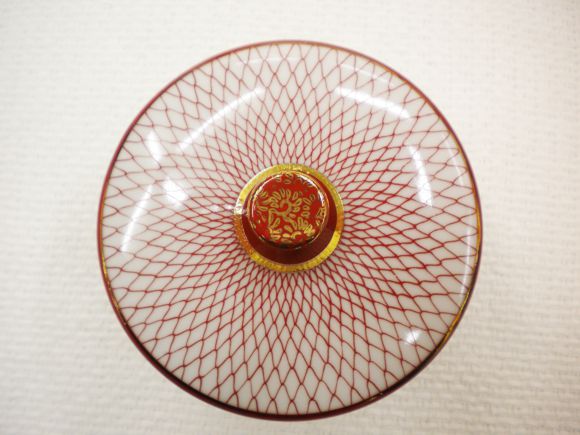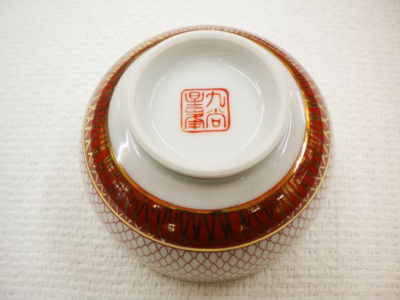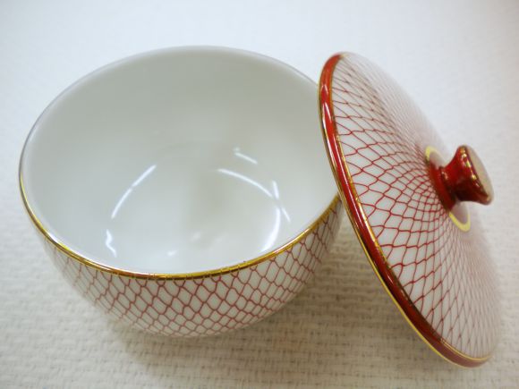 【0302】蓋付き湯呑 五客セット 九谷焼 赤網