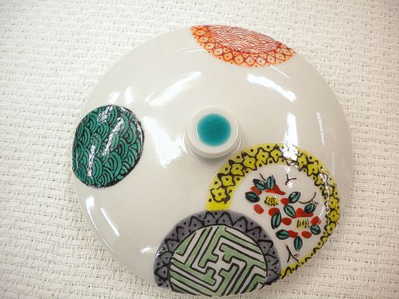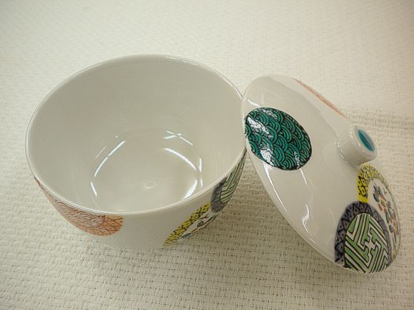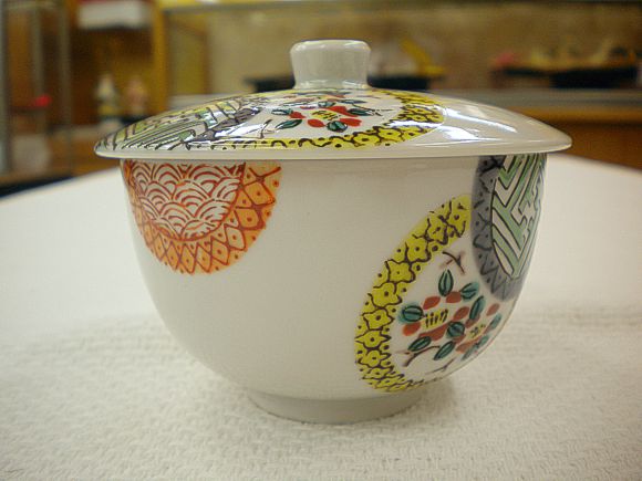 【0306】蓋付き湯呑 九谷焼 色絵丸紋