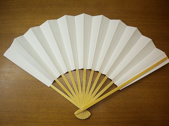 男性用の白扇は、短寸(21cm)で親骨が広いものがスーツ用、一般的な27.5cmが和服用です。