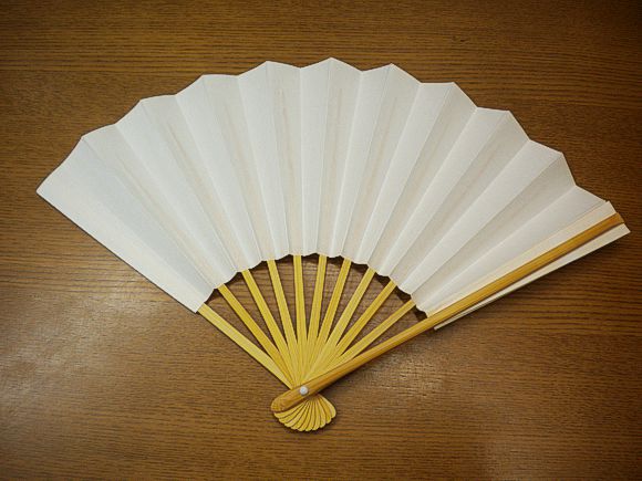 男性用の白扇は、短寸(21cm)で親骨が広いものがスーツ用、一般的な27.5cmが和服用です。