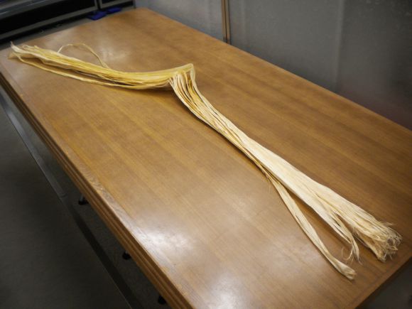 - 1枚1枚の巾や厚みにばらつきがあり、また、縦方向に裂けやすいため、細い繊維も若干混じりますのでご了承下さい。