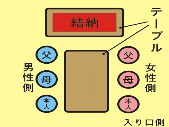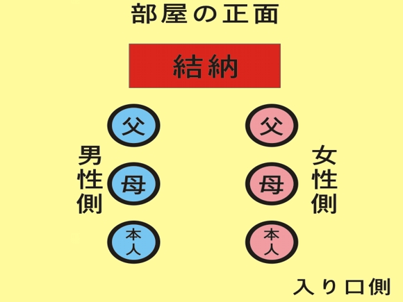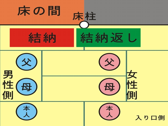 洋間 の場合も、男性側と女性側の位置が結納と逆になるだけです。