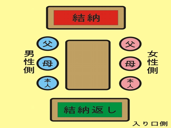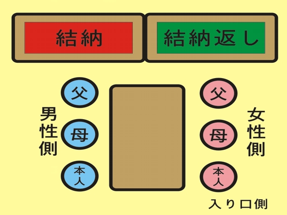 | 結納、 同時返しの結納、 養子の結納返し | 上座 | 下座 |