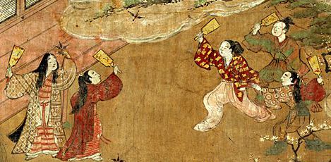 羽子板の由来は、奈良時代に宮中で行なわれていた「毬杖(ぎっちょう)」という遊びだとされています。「毬杖(ぎっちょう)」は、先が小槌のような形をした杖(つえ)で木製の毬(まり)を打ち合う遊びで、現代のホッケーに近いものです。
