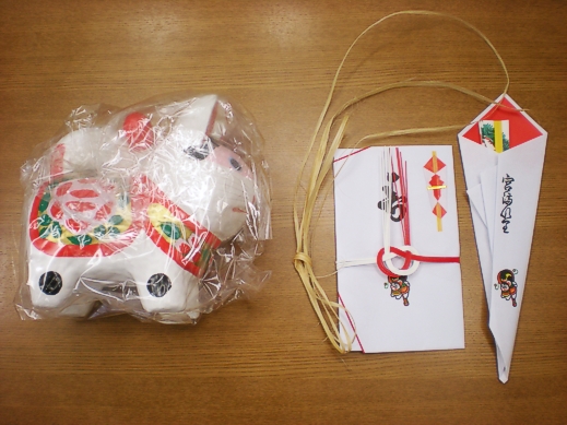 当店の場合は、犬張子、末廣(扇子)、麻、ポチ袋 がセットになっています。