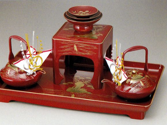 その他、普通の屠蘇器とは別に、結婚式の三々九度で使う婚礼用の屠蘇器があります。こちらは結婚式専用です。