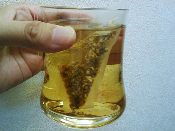 7〜8時間放置すると薬効成分が溶け出し、褐色かかった色になります。十分に溶け出したら袋を取り出します。