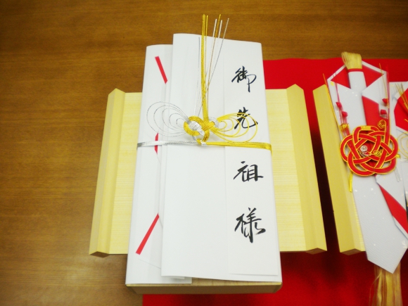 以前は家族全員分を付けましたが、現在はコンパクトな結納が好まれるので、ご先祖様のお線香または両親への品物を1〜2品用意します。