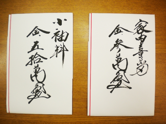 他の一部地域で、「酒肴料(しゅこうりょう)」と書かれた金封を用いる場合もあります。