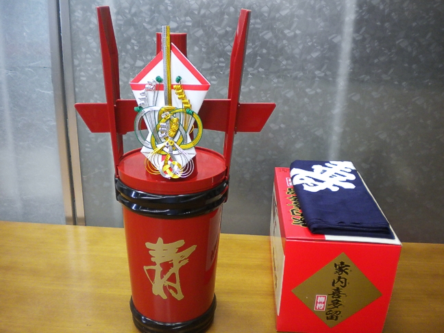 お酒は、角樽(つのだる)」 か、一升瓶に飾りをつけたもの にします。