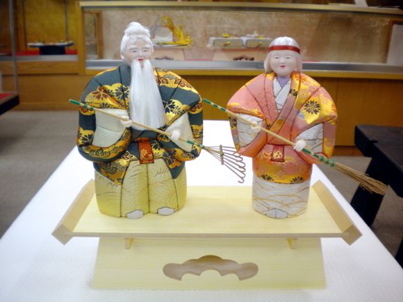 おじいさんとおばあさんの姿をした人形です。 木目込み人形、九谷焼人形、一刀彫人形があり、お好みのものを用います。 「相生(あいおい)の松」という伝説に基づく松の木の精霊で 夫婦円満の象徴 です。 結納終了後も記念品として飾ることができるので、全国的に用いられます。 関西式 と 九州式 の結納では 特によく用いられ、必需品です。 【高砂人形の意味や由来についてはこちらをご参照下さい。】 |