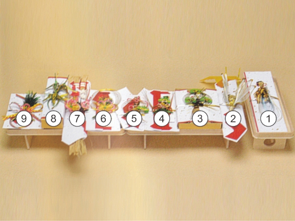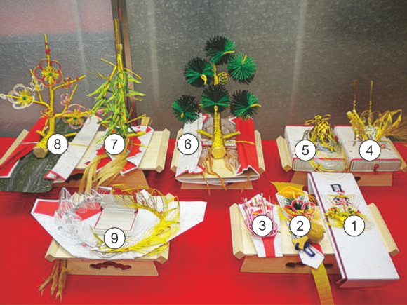 - 「九品飾り」・・・正式結納で 9品以上 の品数のもの。