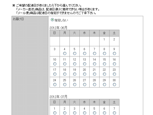 ※ 「お届け時間帯」は運送業者の都合により変更される場合があります。詳細はトップページ下方「着荷指定について」をご覧下さい。