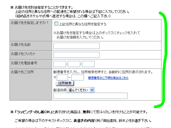 E 商品を 別の住所 へ送る場合は、この欄にご記入下さい。