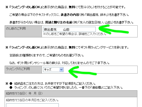 と表示された商品は、無料にて ギフト用ラッピング と のし紙 を掛けることができます。