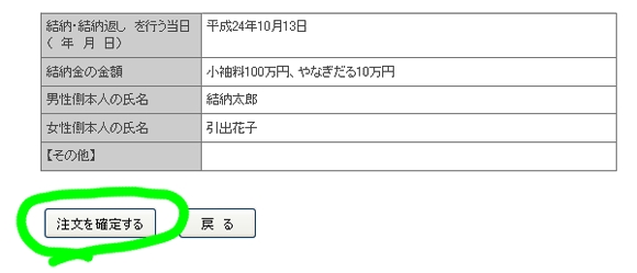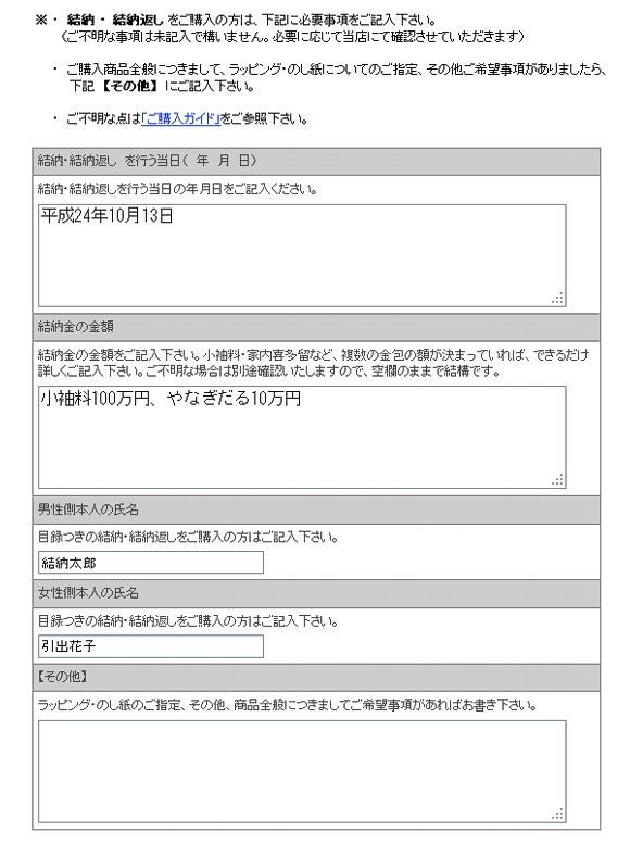 なお、結納 を直送される場合は、