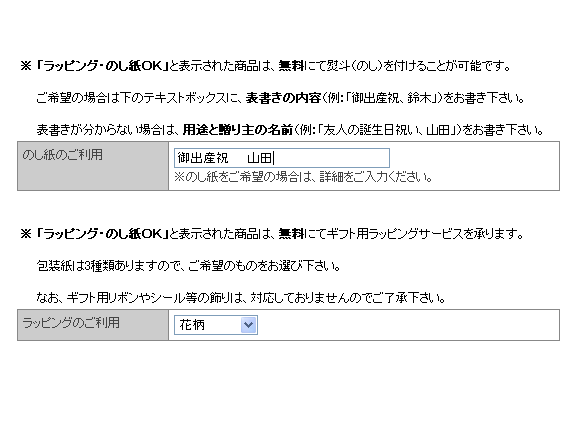 の表記が無い商品につきましては、ギフト包装・熨斗紙サービスをお受けできませんのでご了承下さい。