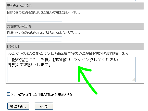 慶事で内のしをご希望の方は、ご注文の際に、ご指定下さい。